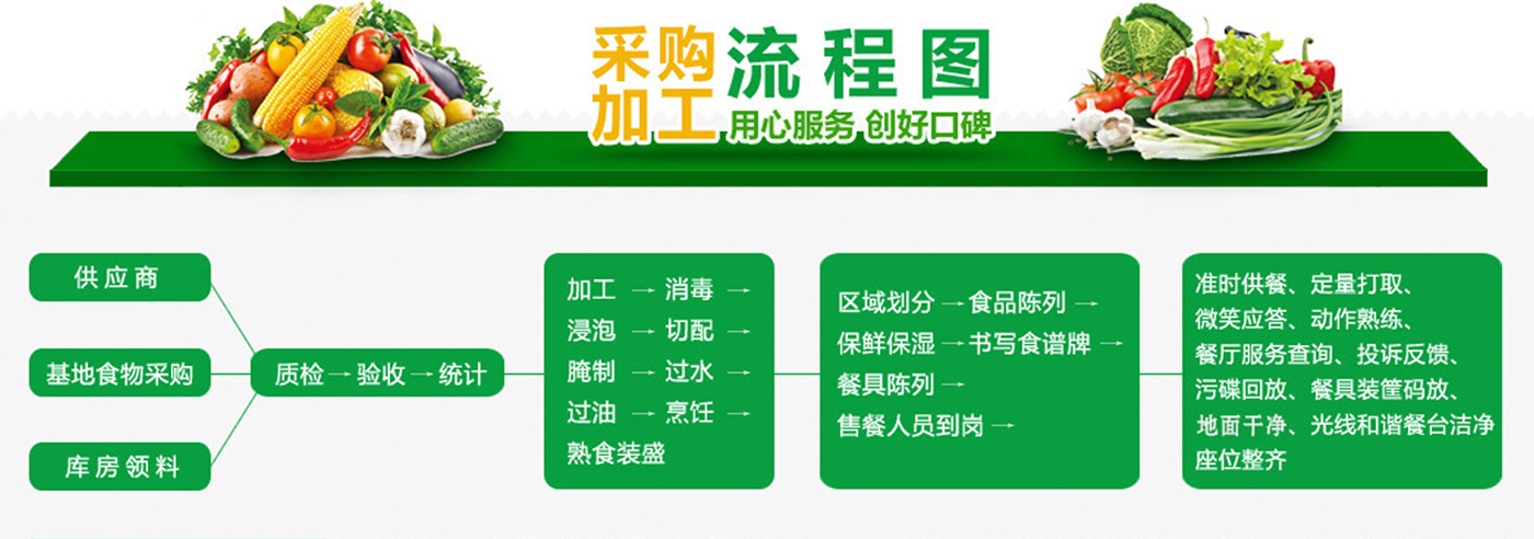我們的目標(biāo):打造營(yíng)養(yǎng)、健康、綠色、環(huán)保、高端的餐飲服務(wù)領(lǐng)域,共同建立值得信賴(lài)的合作伙伴關(guān)系!食堂質(zhì)量保證。